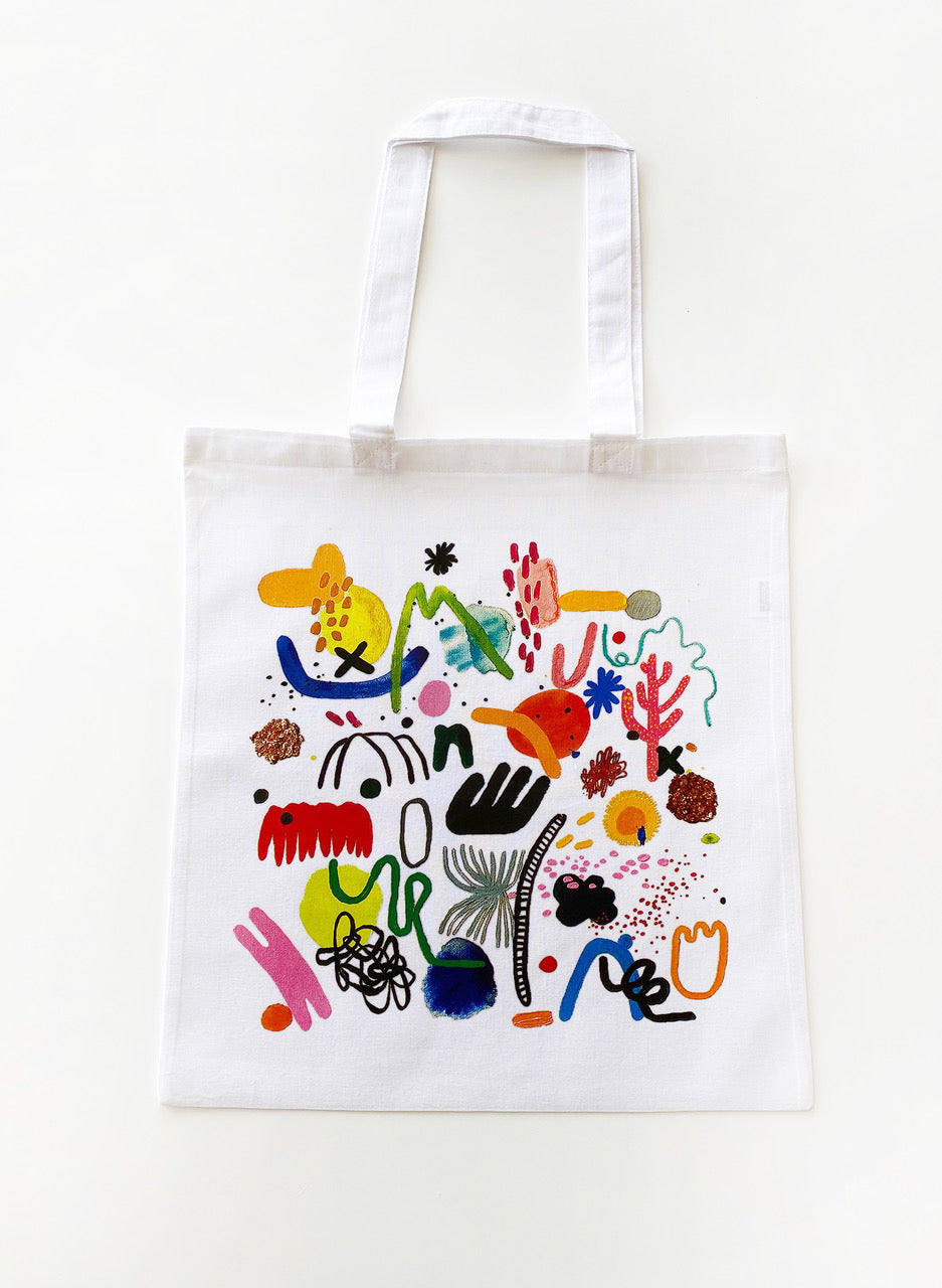Tote Bag: 14.5” (36 cm) wide x 16”(46 cm) tall